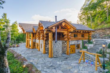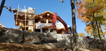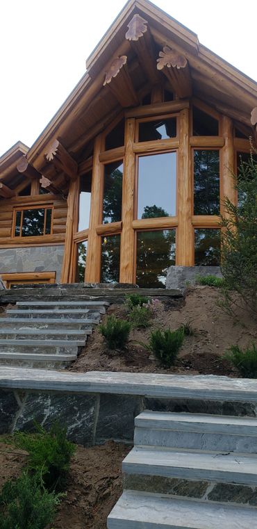 This log house project was fully managed by our team from start to finish. Nestled on a scenic stone hill with direct water access, it presented both a challenge and an opportunity to showcase our expertise in landscape design and construction.